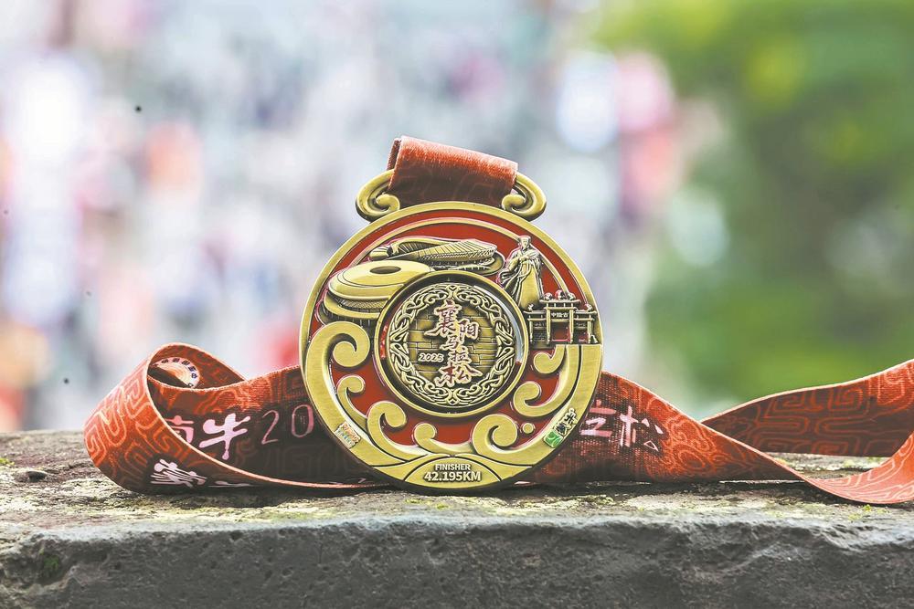 襄阳2025年马拉松完赛奖牌。 (库马组委会供图)